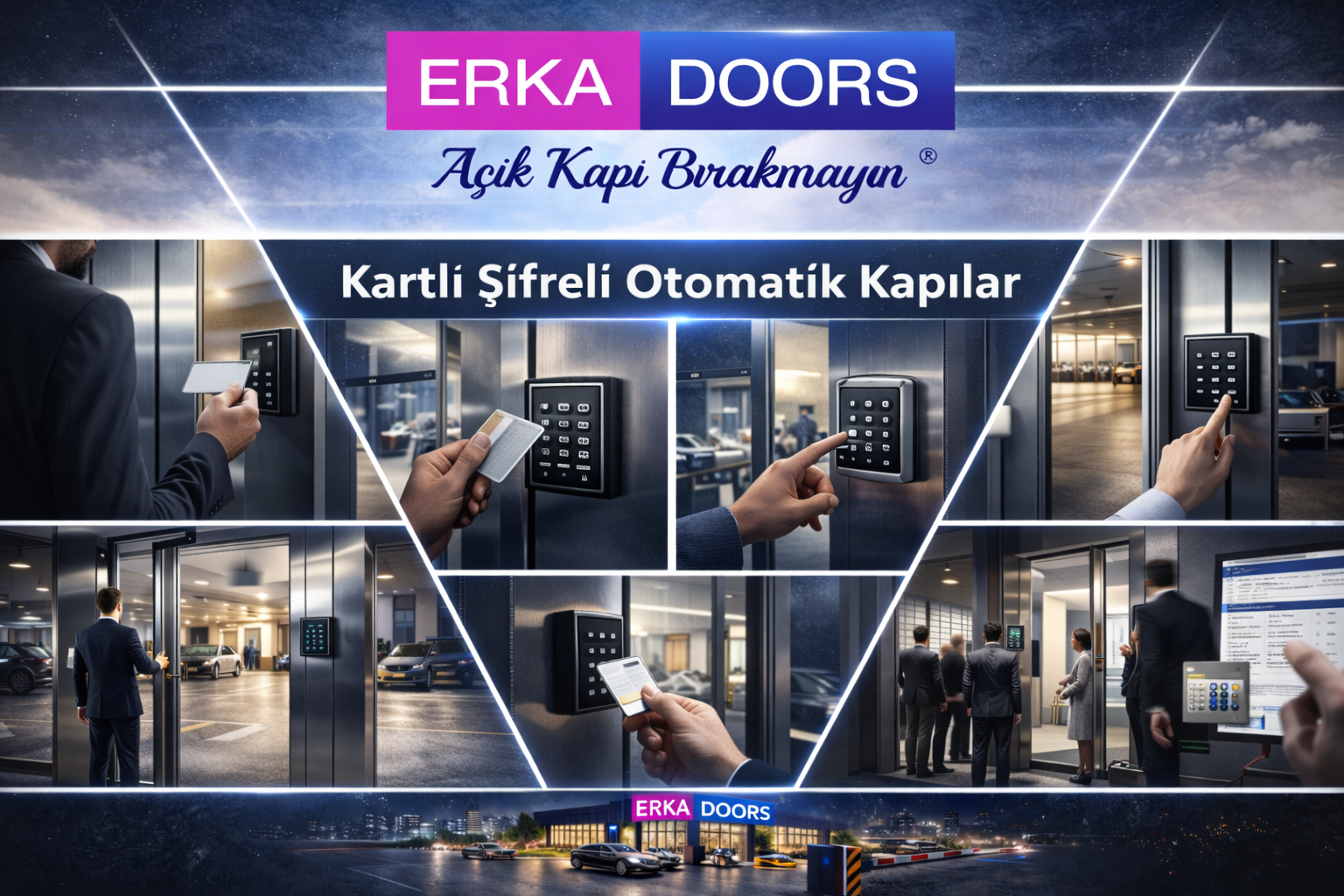 ERKA Doors olarak site, apartman, iş yeri ve endüstriyel alanlar için yüksek güvenlikli kartlı ve şifreli otomatik kapı sistemleri sunuyoruz. Yetkilendirilmiş geçiş imkânı sağlayan bu sistemler, kontrolsüz girişleri önleyerek maksimum güvenlik sağlar.